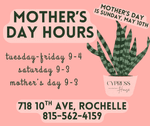 Find the perfect gift for all the moms and mother figures in your life! Fresh flowers, boutique clothing, plants, gift cards, jewelry and more. Open Mother's Day 9-3